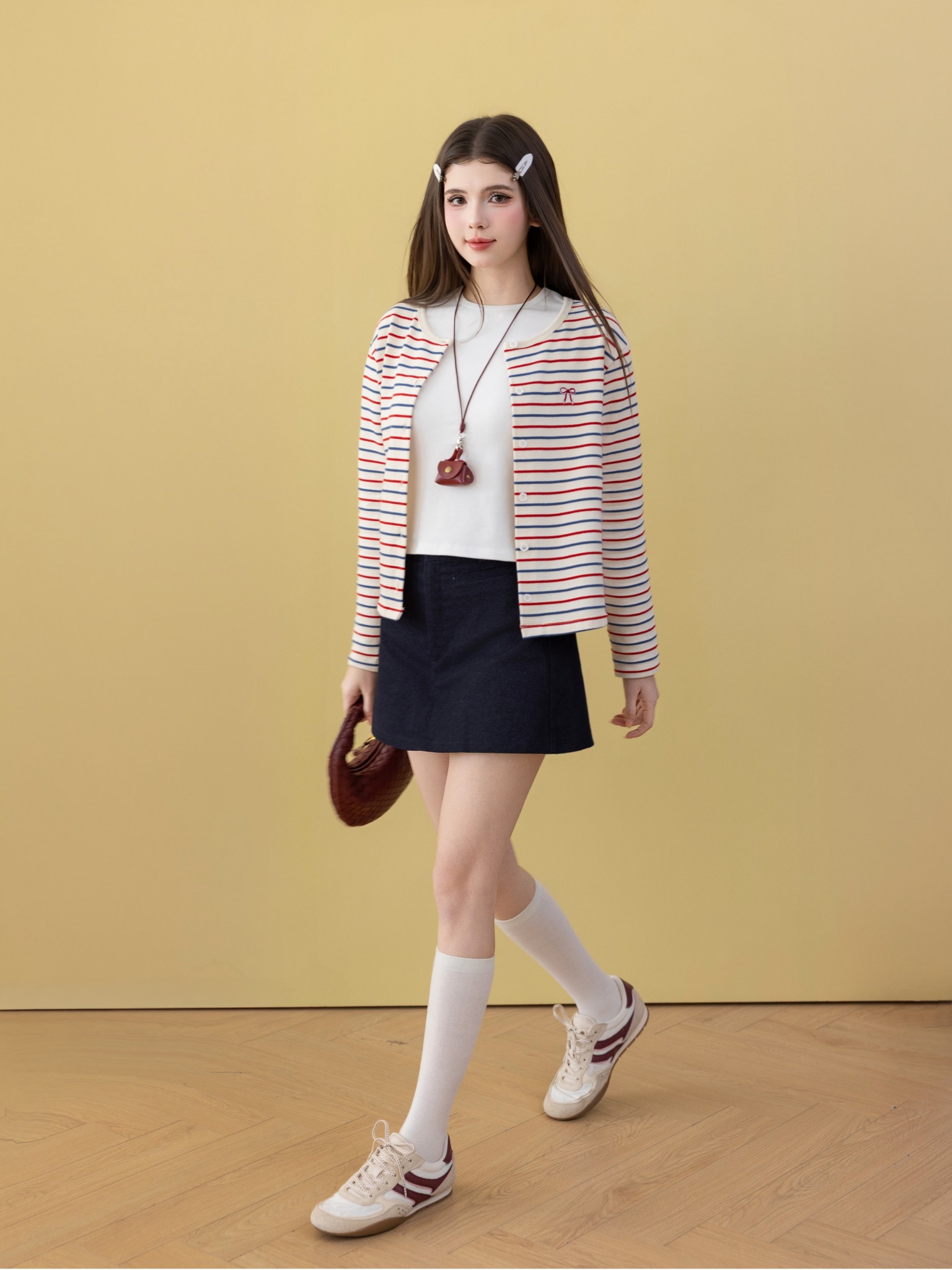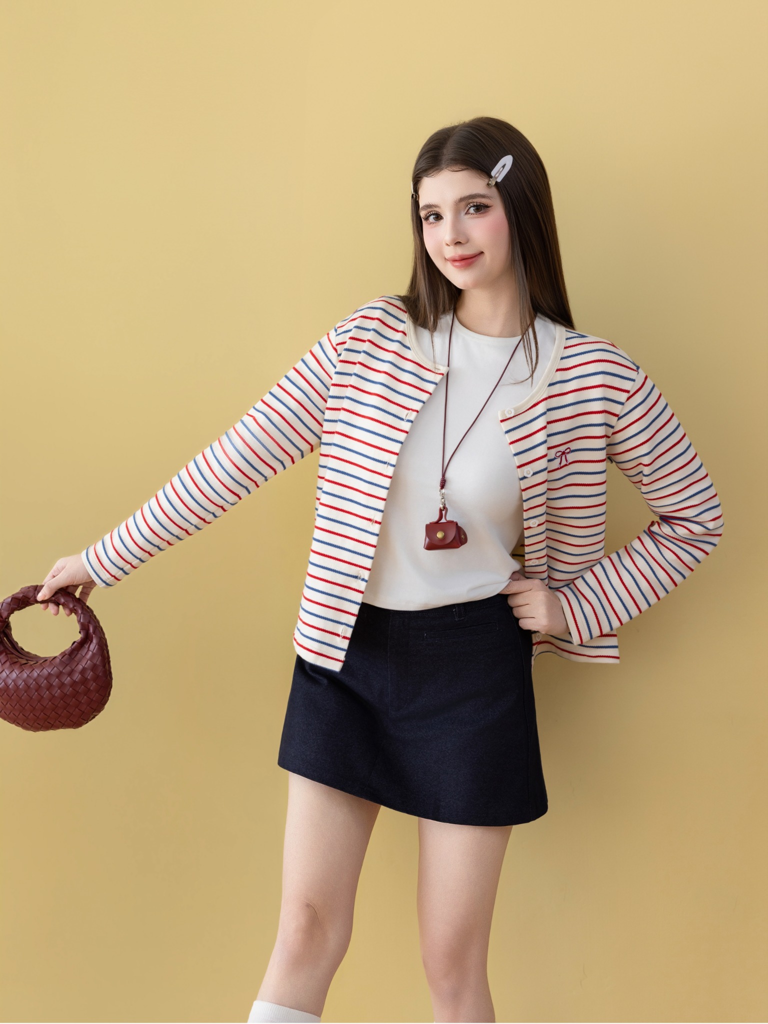 - Chất liệu: Chất denim vừa vặn, dạng quần giả váy.