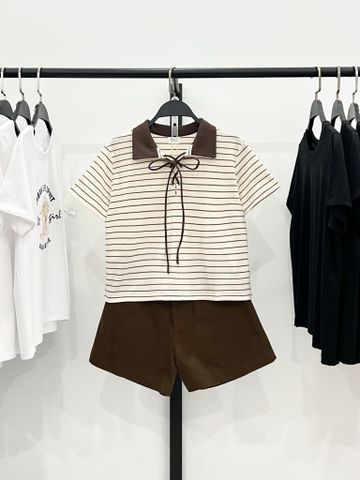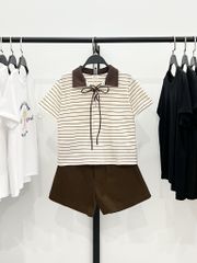 Delly Top- Chất liệu: Chất thun cotton sọc vừa vặn, mềm mại, co giãn tốt mặc thoải mái- Màu sắc: Kem sọc nâu- Size: S/M/L