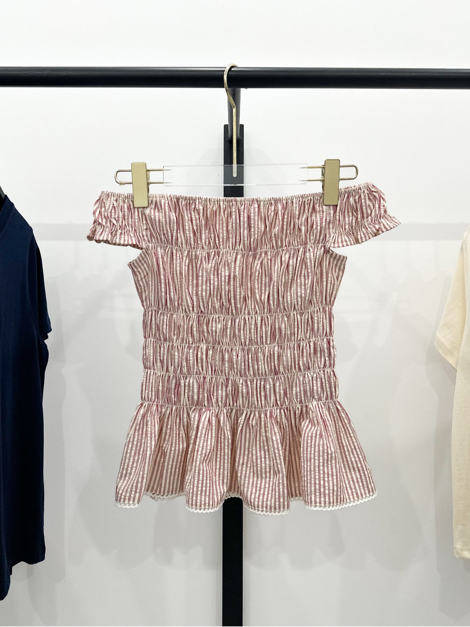- Chất liệu: Chất cotton sọc có độ xốp, được may smocking co giãn tốt, chất vải vừa vặn mặc thoải mái
