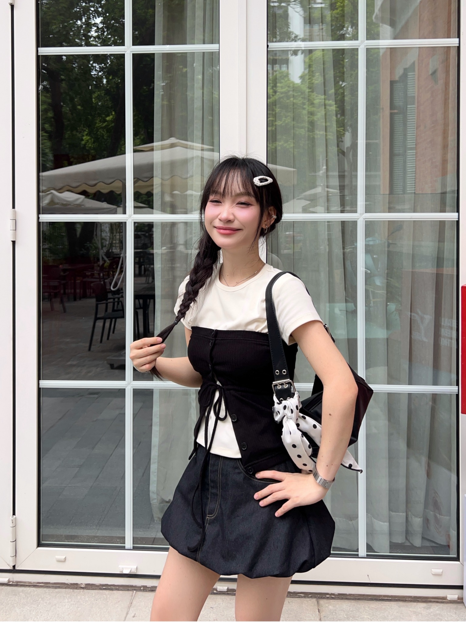 - Chất liệu: Chất vải khaki jeans, dạng váy bí và có quần bên trong bằng lụa mềm mịn