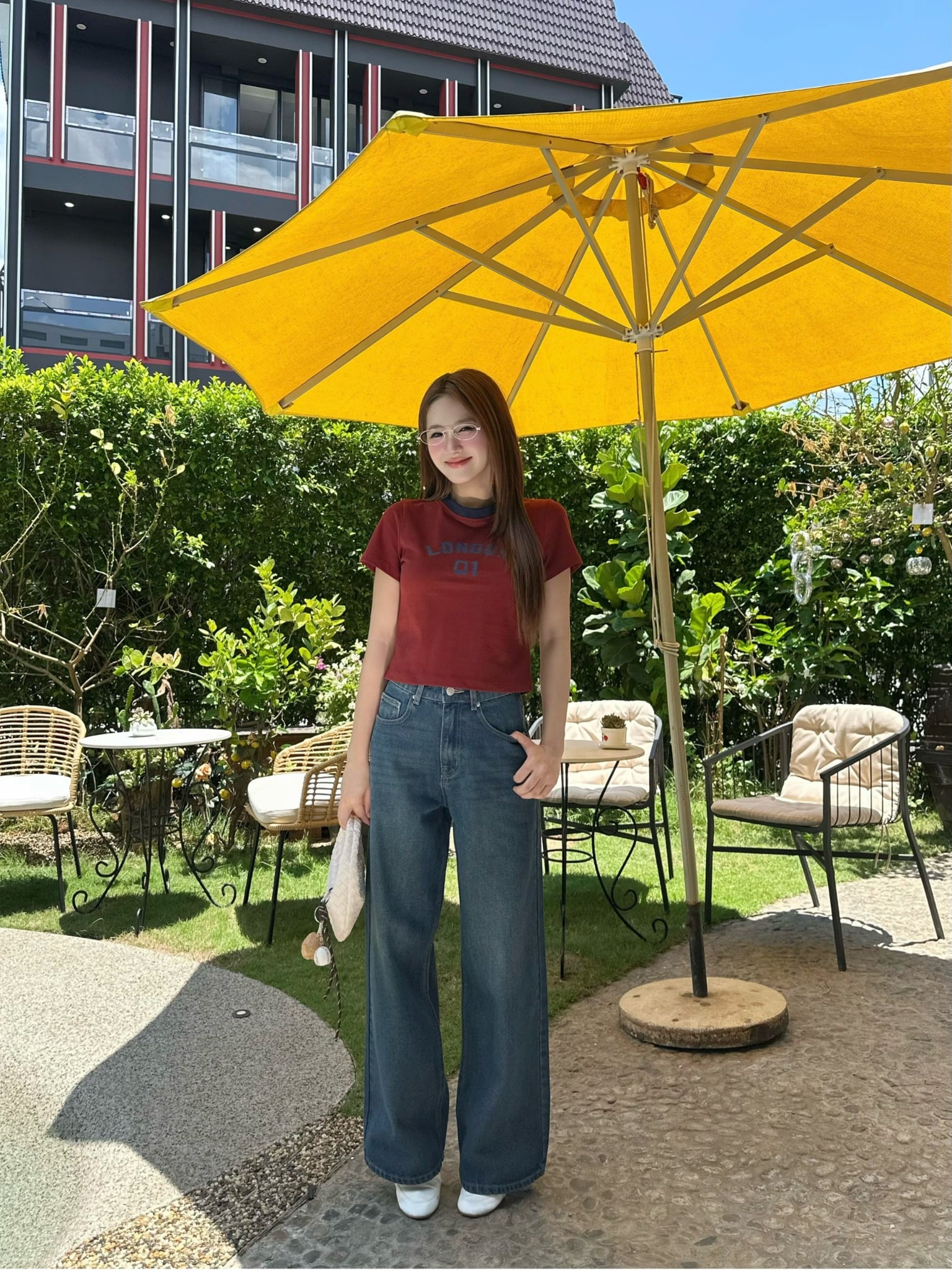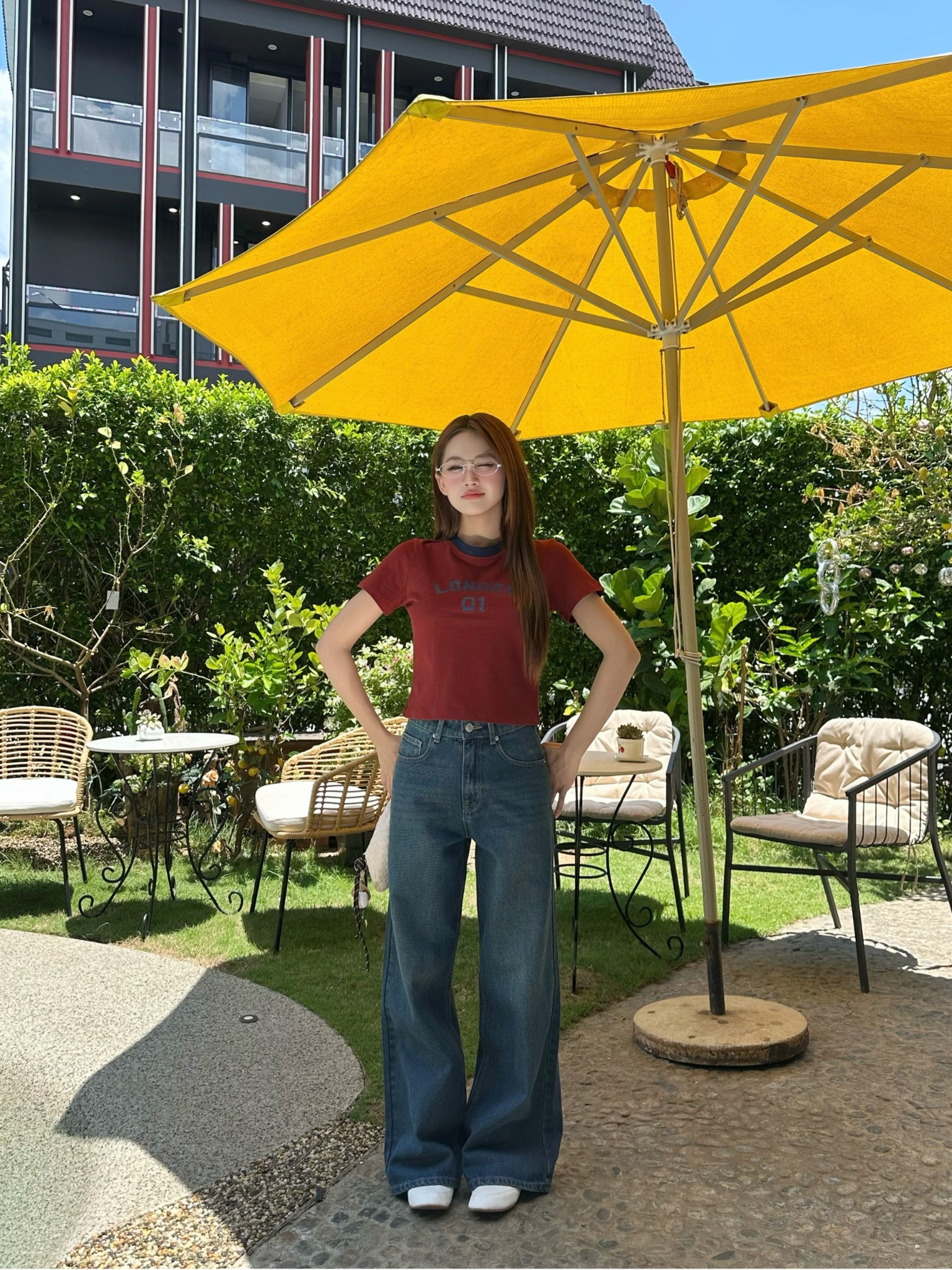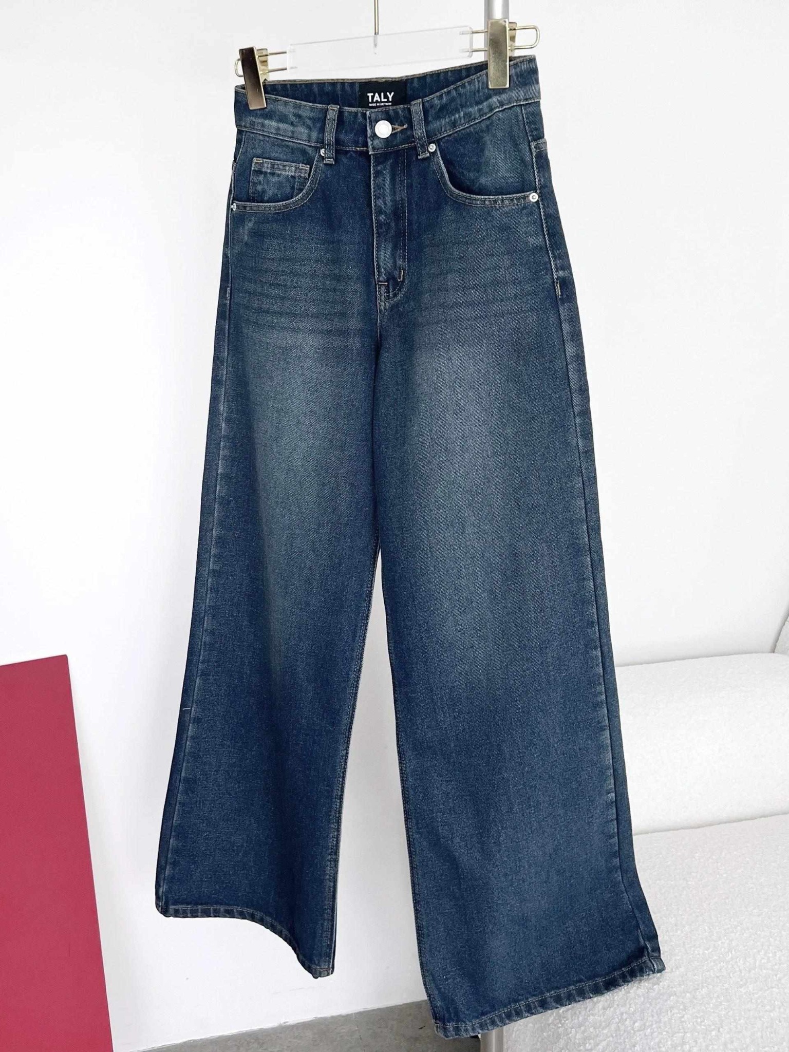 - Chất liệu: Chất Denim dày dặn, đứng form, form quần lưng vừa tầm ngang rốn